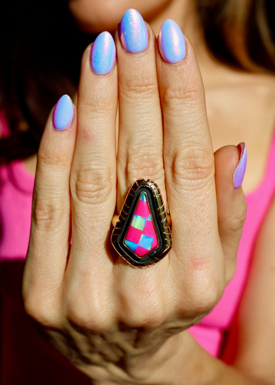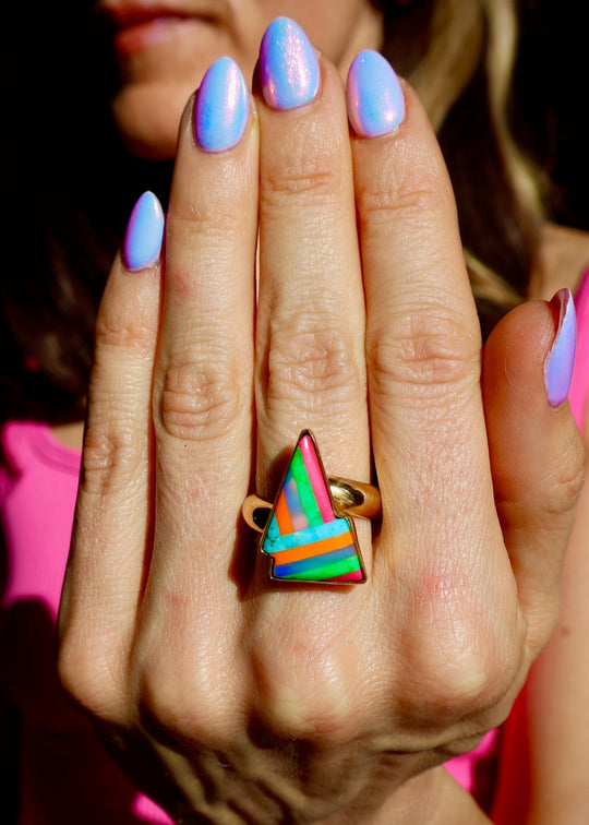 This collection pulls from some of our edgier materials we’ve been saving for the right moment (because yes, we absolutely hoard stones until the vibe is correct). It’s playful, a little rebellious, and rooted in the idea that jewelry can be both beautiful and irreverent. Think vibrant color, unexpected details, and designs that don’t ask permission.