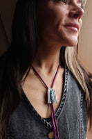 44" long barberry, soft Napa Lamb leather. Sterling Silver Tips.