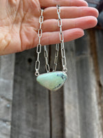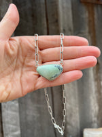 Varascite set in Sterling Silver on adjustable 16" paperclip chain.