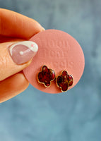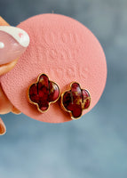 Red Dahlia Turquoise in Gold Alchemia with stainless steel posts.