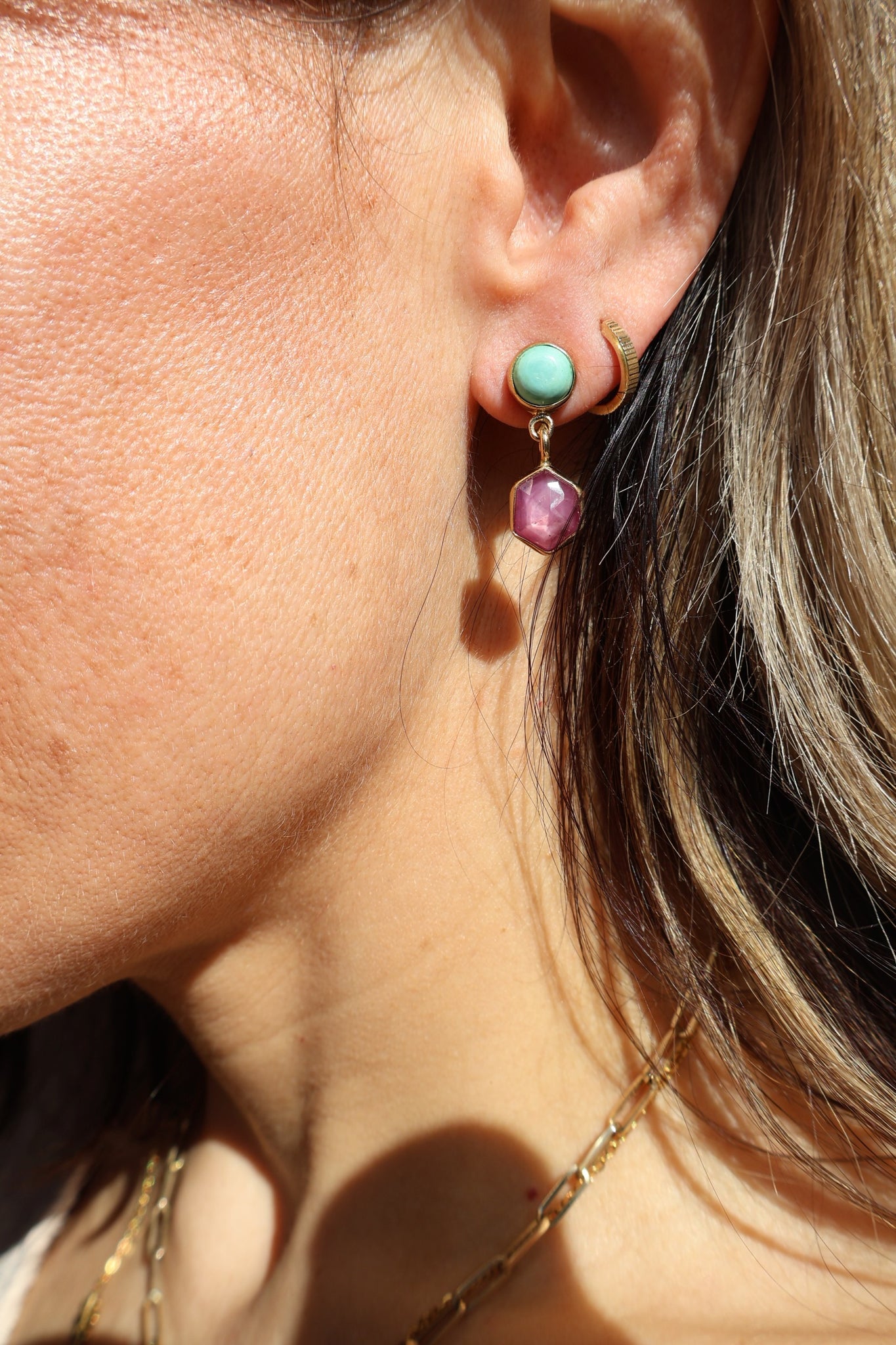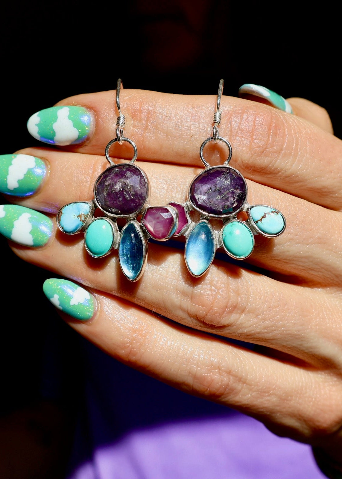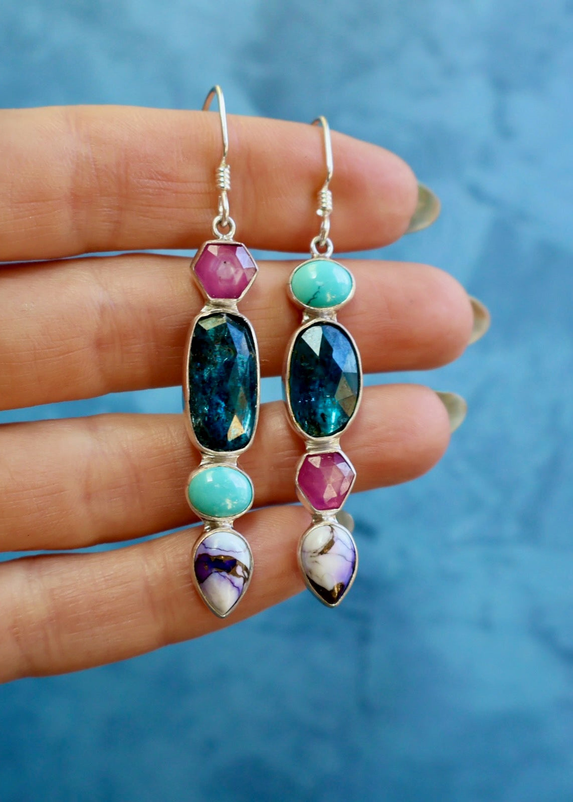 Holiday Party Earring Aquamarine, Ruby, Kyanite & Turquoise in Sterling Silver HP33