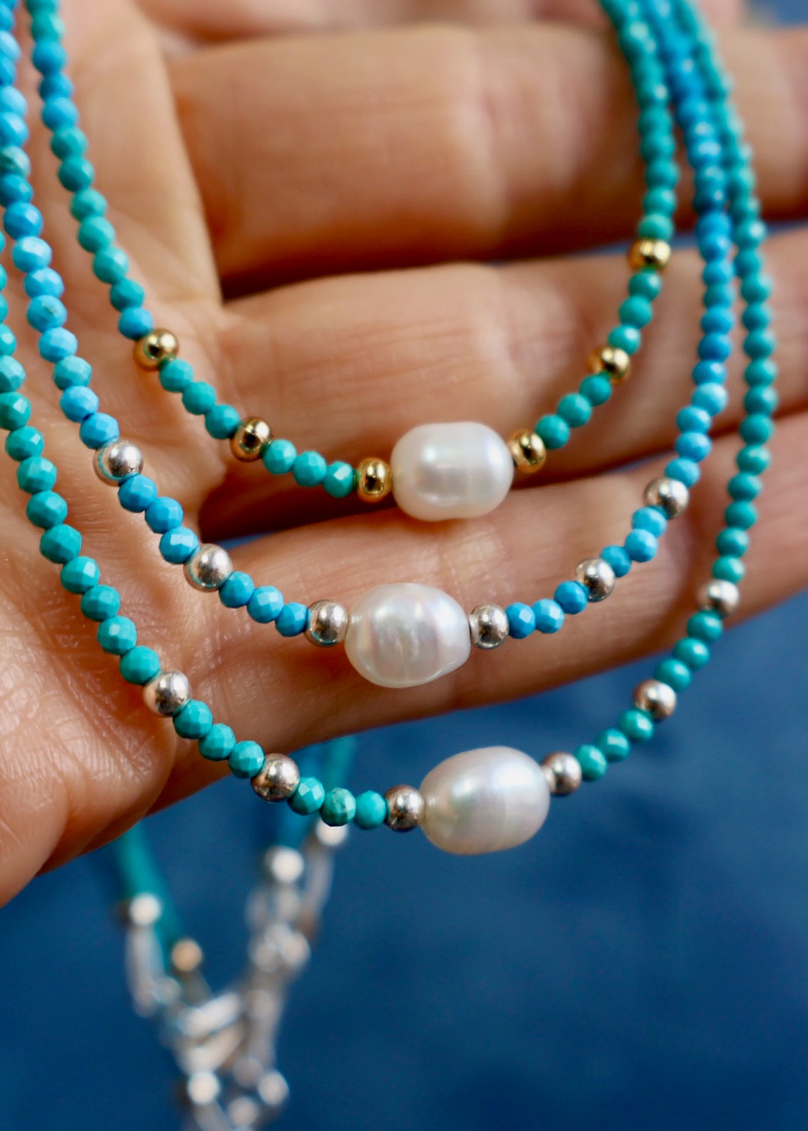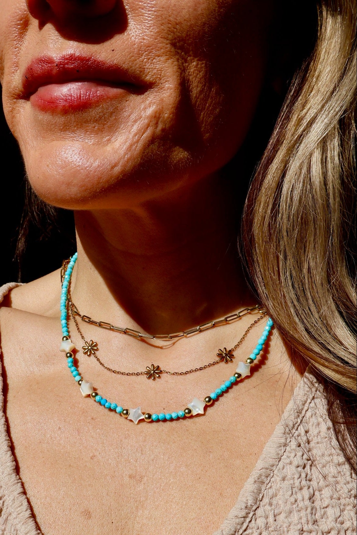 Campitos Turquoise with silver/gold beads Beaded Layering Necklace HP72