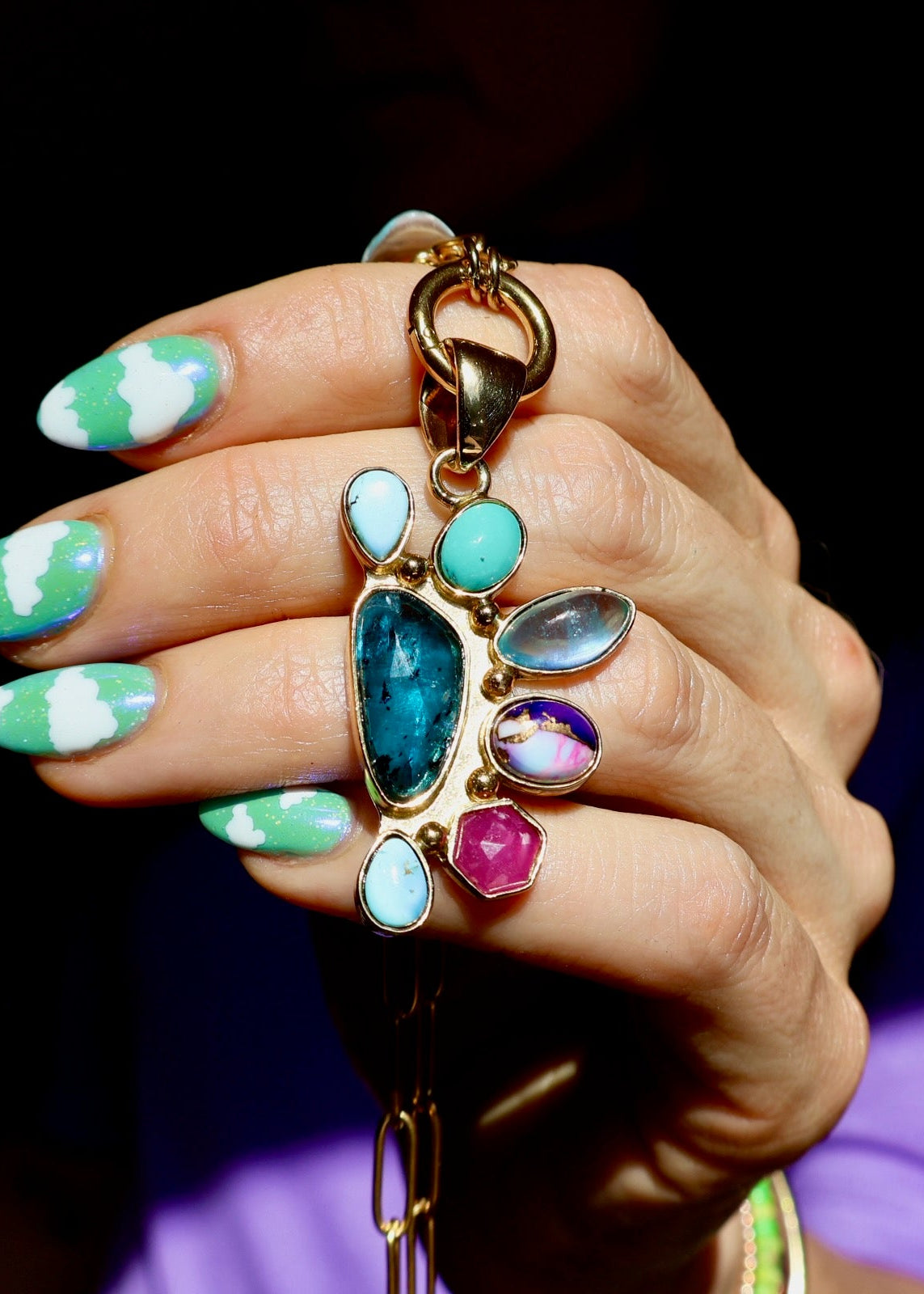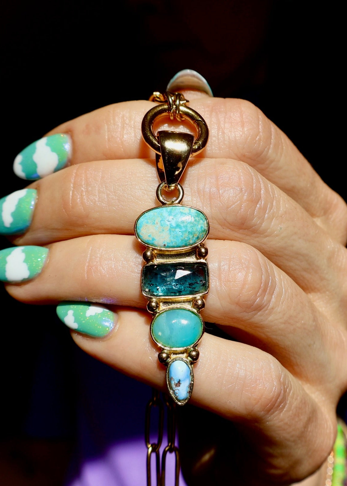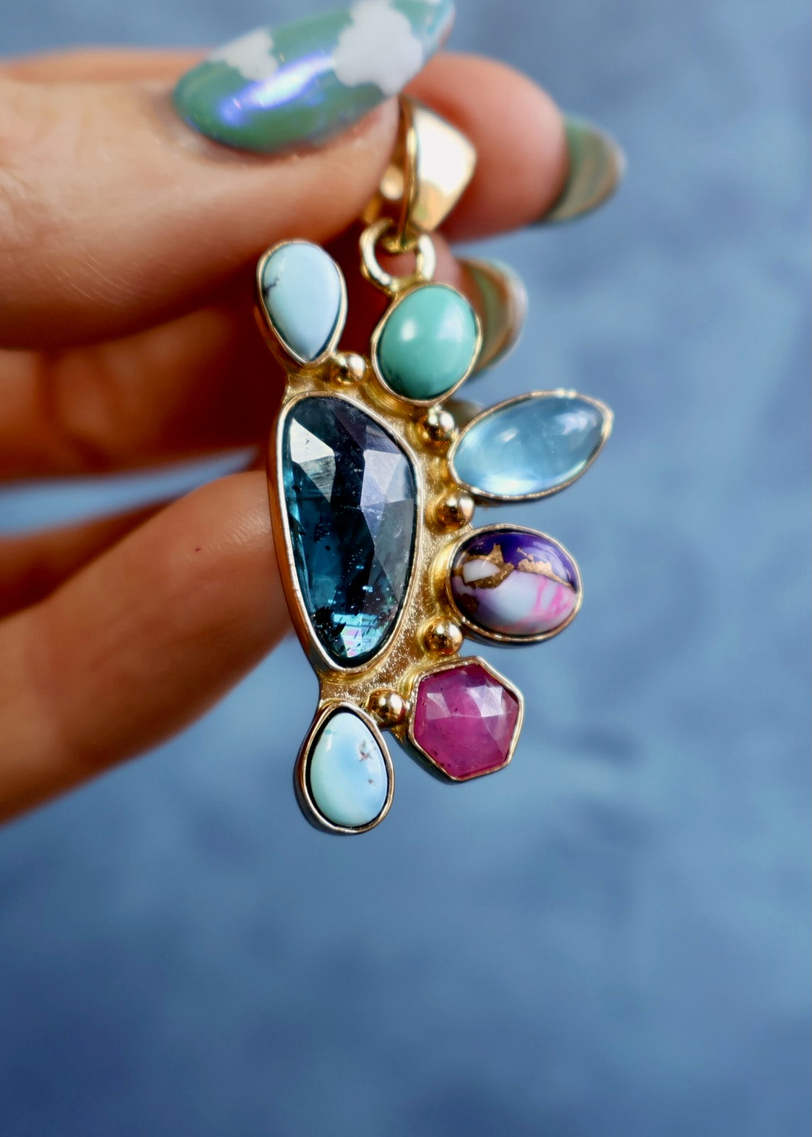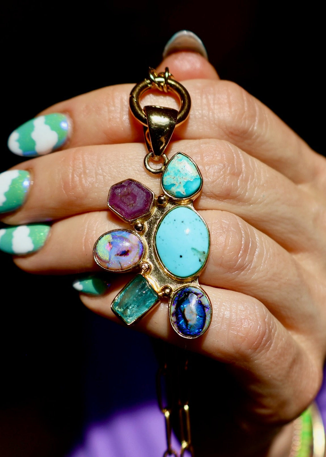 *Pendant Only* Campitos Turquoise, Aquamarine, Opal and Ruby in Gold Alchemia HP37