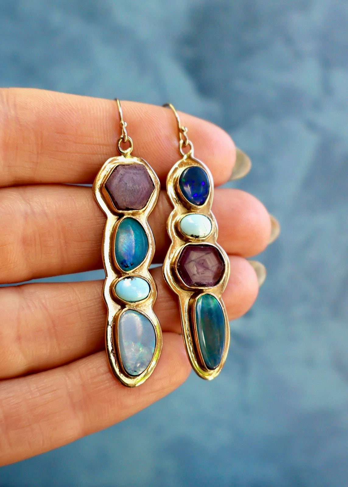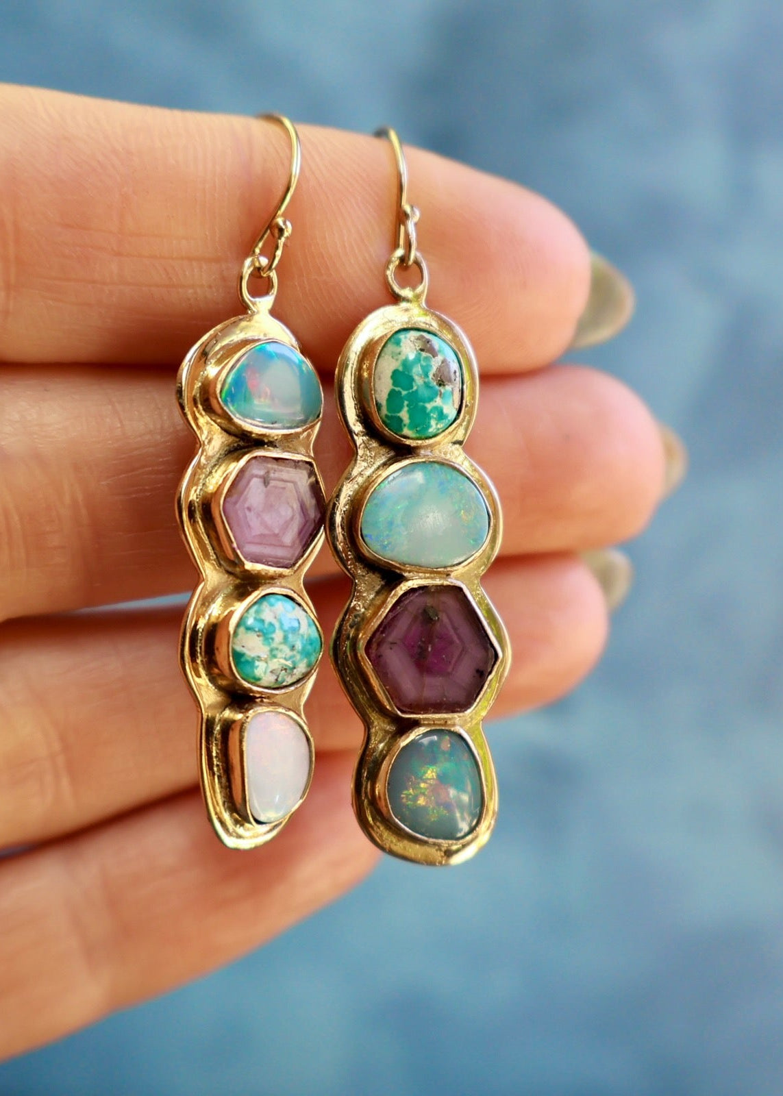 Holiday Party Earring Aquamarine, Opal, Ruby, Kyanite & Turquoise in Sterling Silver HP31
