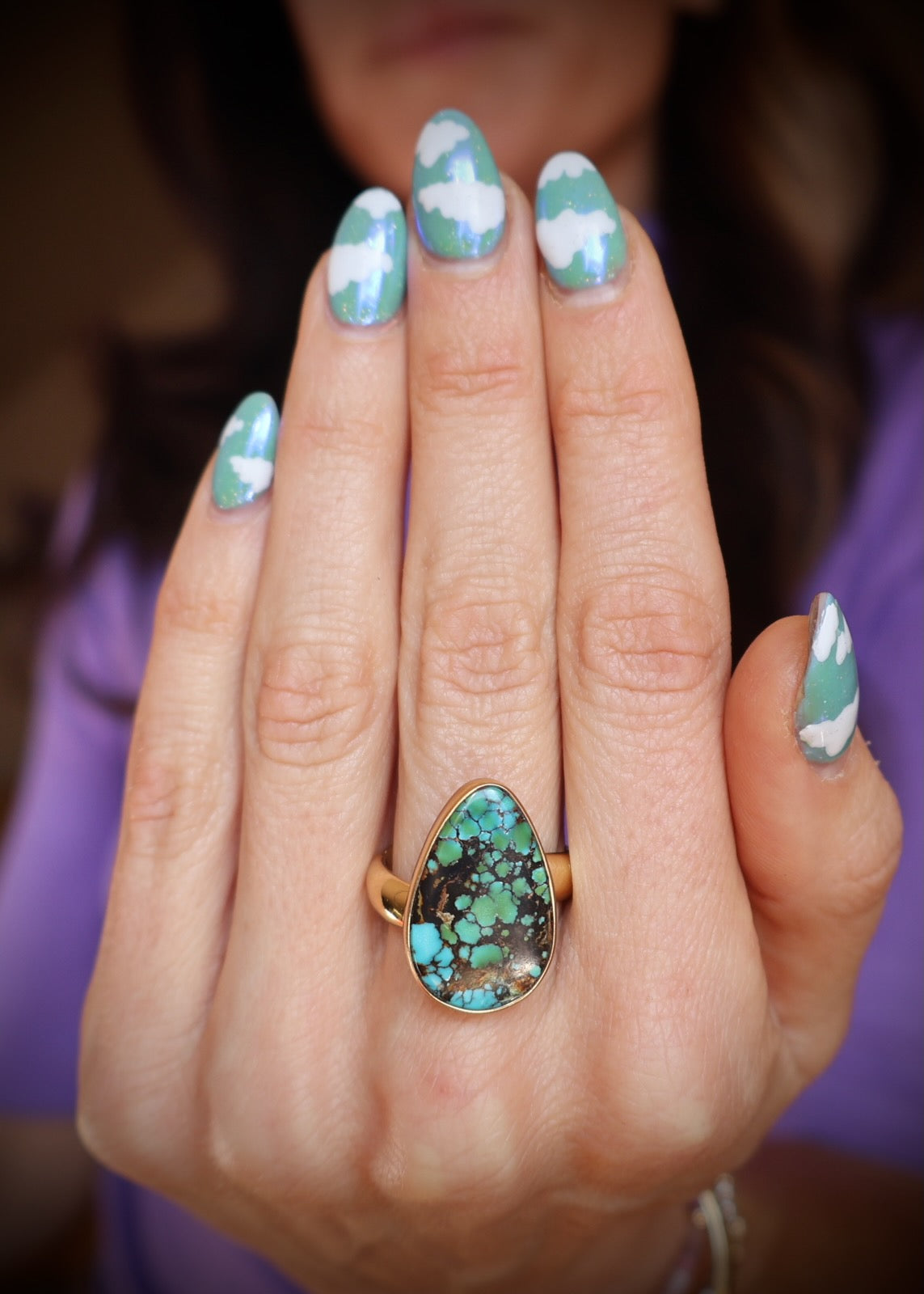 Aquamarine, Ruby, Turquoise, Kyanite & Purple Dahlia in Gold Alchemia HP41