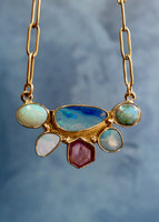 Aquamarine, Ruby, Turquoise, Kyanite Purple Dahlia & in Gold Alchemia on