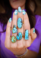 Designed by Moon Bear Jewels amidst the scenic beauty of Telluride, Colorado, each ring is meticulously crafted using semi-precious stones.ย