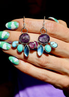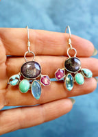 Aquamarine, Ruby, Kyanite, Purple Dahlia & Turquoise set in Sterling Silver. Sterling Silver Ear Wires.