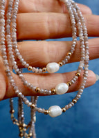 Moonstone & Gold FIll beads with single pearl. Adjustable 16"-18"