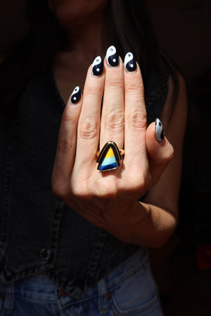 Handcrafted by Moon Bear Jewels amidst the scenic beauty of Telluride, Colorado, each ring is meticulously crafted using semi-precious stones. Each piece is uniquely crafted.