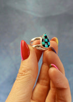 Turquoise Checkerboard Cuff- Ring Adjustable HE14