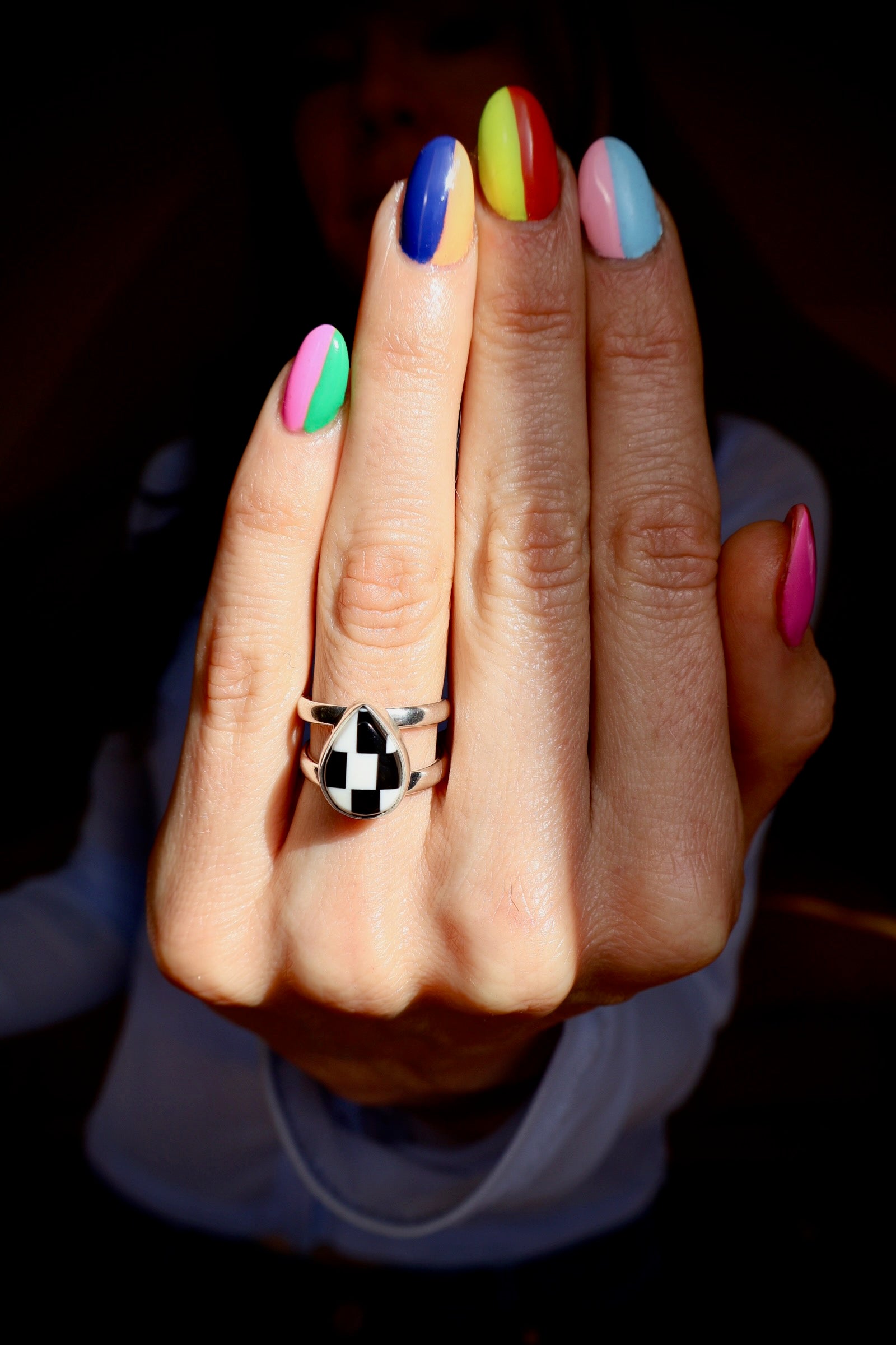 Checkerboard Cuff- Ring Adjustable HE16