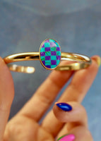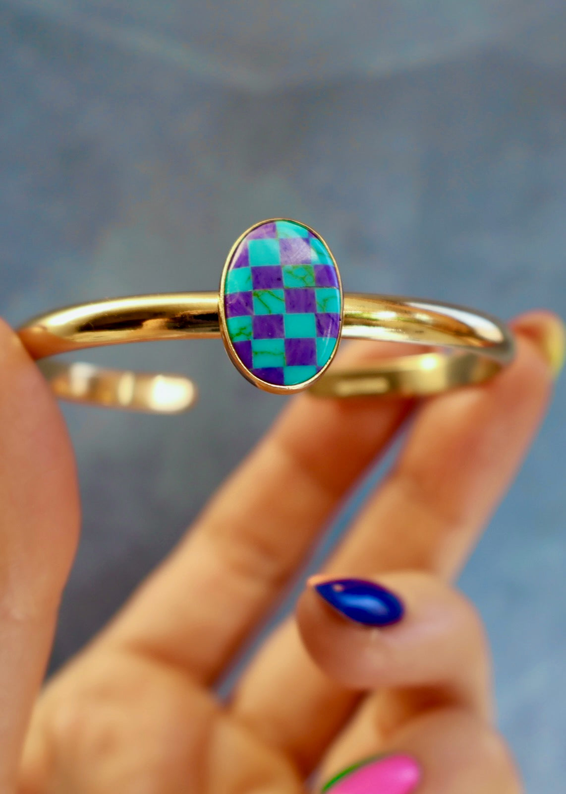 Checkerboard Pool Ball Turquoise/Purple Cuff Bracelet HE4