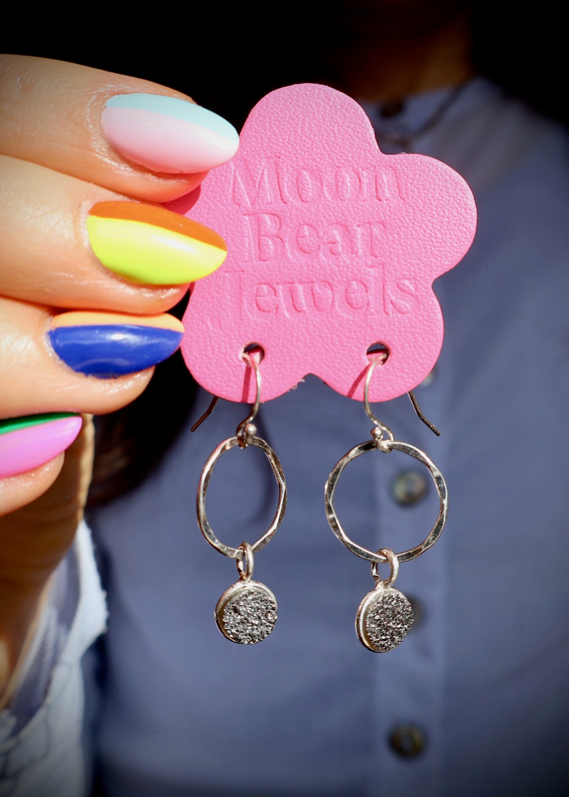 Handcrafted by Moon Bear Jewels amidst the scenic beauty of Telluride, Colorado, these earrings are meticulously crafted using semi-precious stones & precious metals. Each piece is uniquely crafted and may vary slightly from the photo.