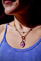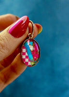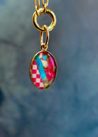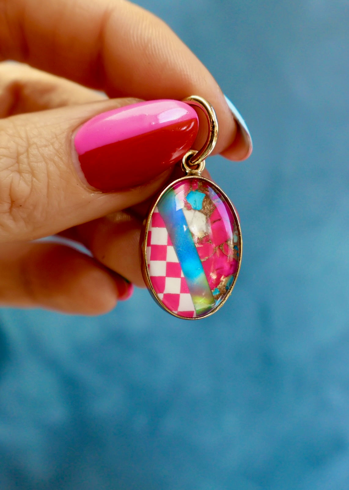 Gorgeous Hot pink Checkerboard, Opal & Turquoise Doublet Pendant in Gold Alchemia.