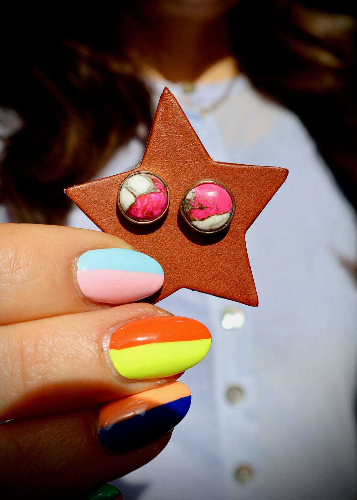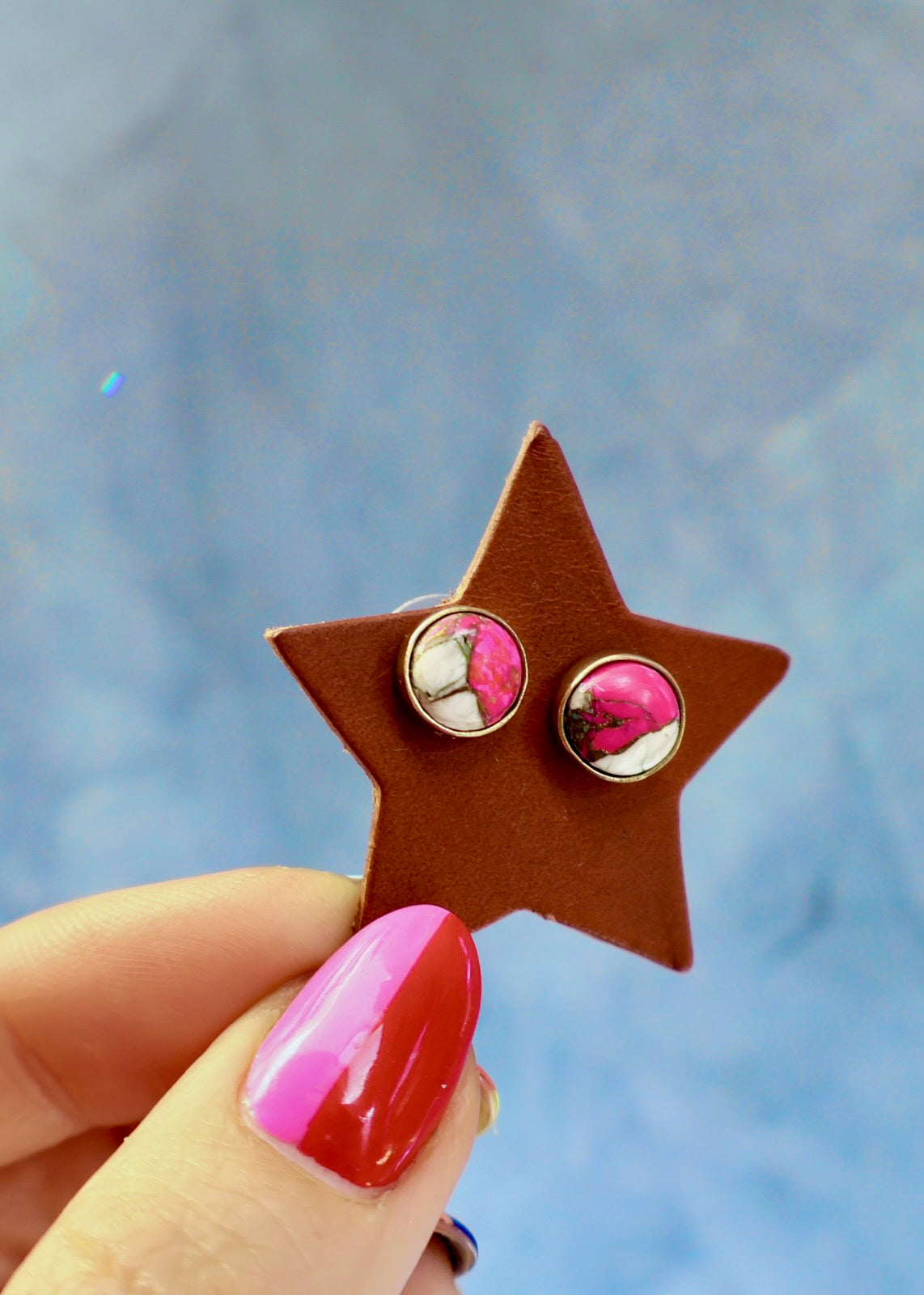 Hot Pink Cotton Candy Turquoise set in Gold Alchemia with Stainless Steel Posts.