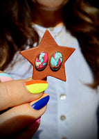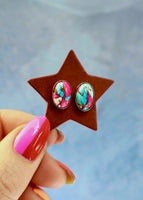 Hot Pink Cotton Candy Turquoise Stud Earrings HE30