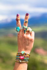 This is an adjustable cuff-ring that fits sizes 6-10. A cuff ring features a split band that is open in the back and allows it to be adjusted again and again.