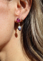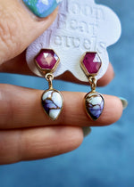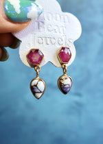 Ruby & Purple Dahlia set in Gold Alchemia. Stainless Steel Posts
