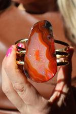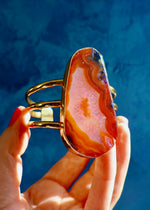 This piece is part of our Moon Bear Runway collection, designed to turn heads and steal the show. Featuring a bold orange agate set in gold alchemia, it was created with love in Telluride, CO, exclusively for the Telluride AIDS Benefit. Now, it’s ready to shine beyond the runway—plus, 1/3 of this entire collection has been donated to HIV/AIDS organizations to support life-saving care and advocacy. ✨