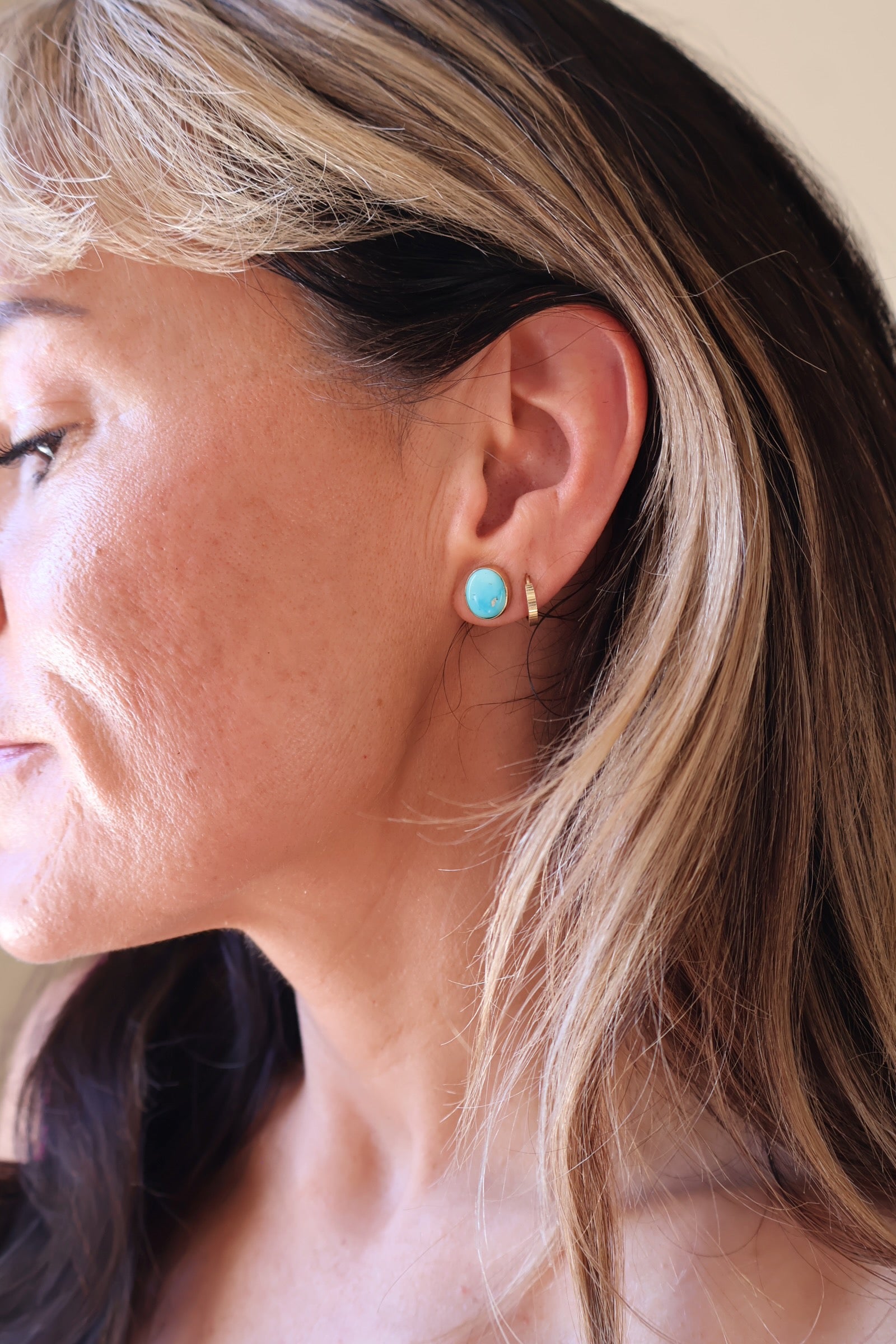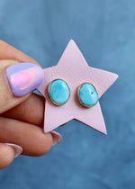 Blue Ridge Turquoise set in Gold Alchemia with Stainless Steel posts.