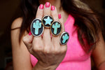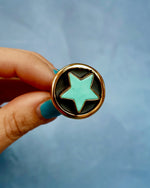 Turquoise Star set in Gold Alchemia. This ring adjusts from size 4-10.
