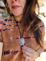 42" long black leather braided cord. Sterling Silver tips.