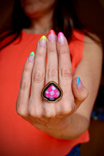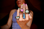 Checkerboard Aurora Opal Heart Adjustable Ring in Gold Alchemia