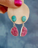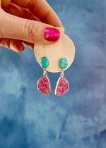 Turquoise & Cobalto Calcite set in Stering Silver with Sterling Silver posts.
