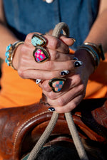Checkerboard Aurora Opal Heart Ring Adjustable Size