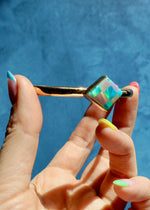 Diamond Shaped Aurora Opal Checkerboard Cab set in Gold Alchemia.