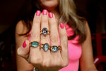 This is an adjustable cuff-ring that fits sizes 6-10. A cuff ring features a split band that is open in the back and allows it to be adjusted again and again.