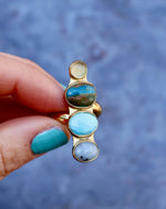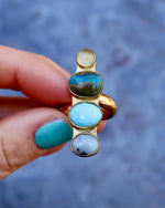 Peruvian Opal, Turquoise & Chalcedony set in Gold Alchemia. This ring adjusts from size 4-10.