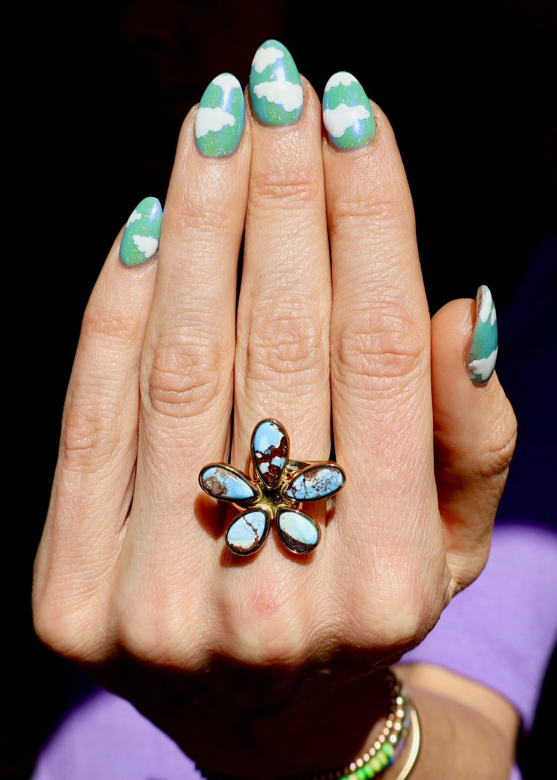 Designed by Moon Bear Jewels amidst the scenic beauty of Telluride, Colorado, each ring is meticulously crafted using semi-precious stones.ย