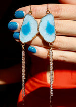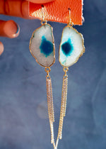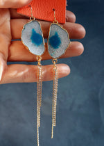 Blue & White Agate Slice & Sparkle Chain Earrings