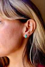 Sonoran Gold turquoise set in gold alchemia with sterling silver posts.