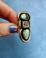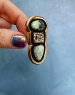 "Quantum Symbols" Triple Stone Variscite & Pyrite Ring in Gold Alchemia- Adjustable