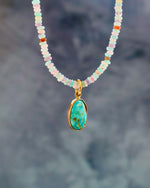 17" Rainbow Opal necklace with turquoise & gold alchemia pendant