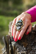 Cloud Mountain Turquoise Shadow Box Ring in Gold Alchemia- Adjustable Size
